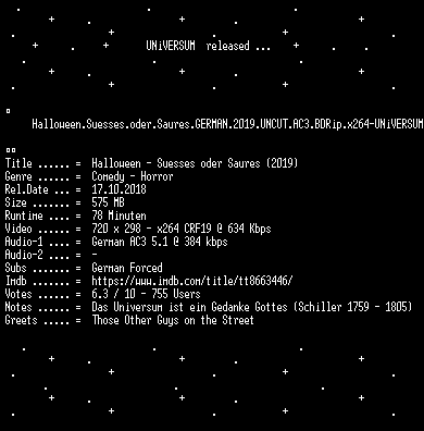 | FiLENAME: | Halloween.Suesses.oder.Saures.GERMAN.2019.UNCUT.AC3.BDRip.x264-UNiVERSUM.mkv |