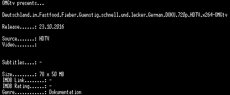 | FiLENAME: | Deutschland.im.Fastfood.Fieber.Guenstig.schnell.und.lecker.German.DOKU.720p.HDTV.x264-OMGtv.mkv |