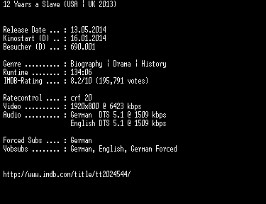 | FiLENAME: | 12.Years.a.Slave.German.DL.1080p.BluRay.x264-EXQUiSiTE.mkv |