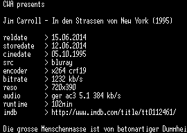 | FiLENAME: | Jim.Carroll.In.den.Strassen.von.New.York.1995.German.BDRip.x264.iNTERNAL-CWA.mkv |