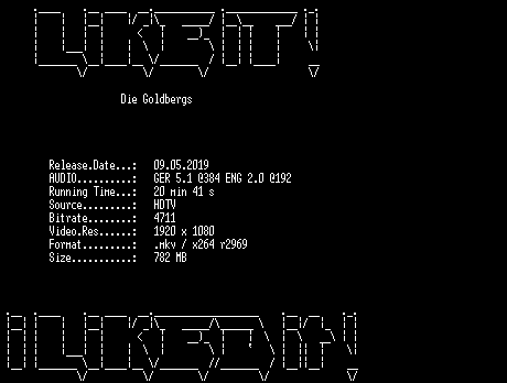 | FiLENAME: | Die.Goldbergs.S05E19.Freundschaftstaenze.GERMAN.DL.1080p.HDTV.x264-LiKEiT.mkv |