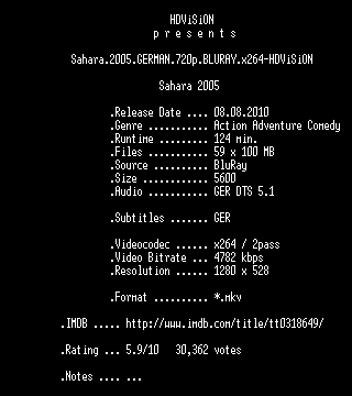 | FiLENAME: | Sahara (2005) [GER-dts 720p BD].mkv |