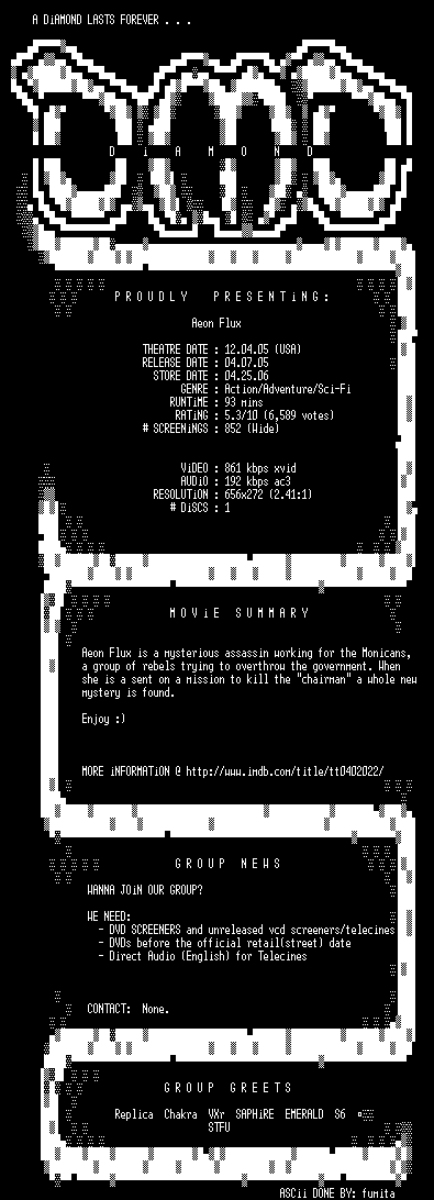 | FiLENAME: | Aeon.Flux.DVDRip.XviD-DiAMOND.avi |