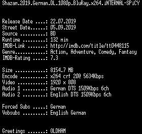 | FiLENAME: | Shazam.2019.German.DL.1080p.BluRay.x264.iNTERNAL-SPiCY.mkv |