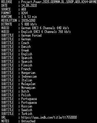 | FiLENAME: | Project.Power.2020.GERMAN.DL.1080P.WEB.X264-WAYNE.mkv |