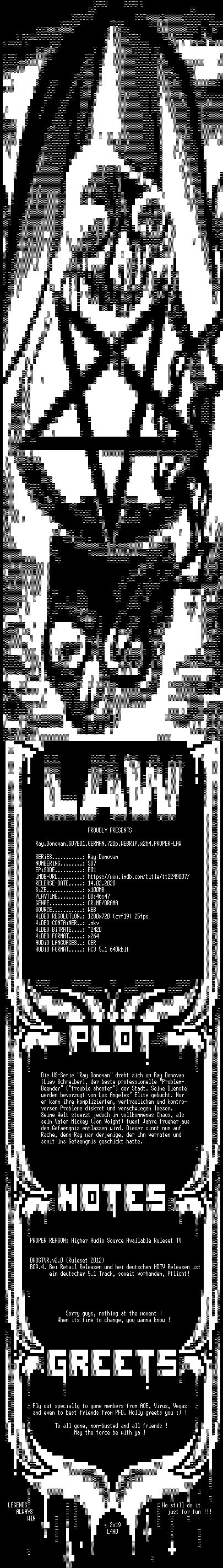 | FiLENAME: | Ray.Donovan.S07E01.GERMAN.720p.WEBRiP.x264.PROPER-LAW.mkv |