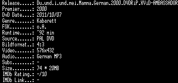| FiLENAME: | Du.und.i.und.mei.Mamma.German.2000.DVDRiP.XViD-AMBASSADOR.avi |