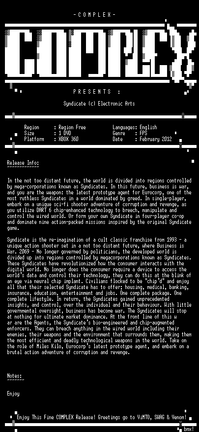| FiLENAME: | Syndicate.XBOX360-COMPLEX.iso |