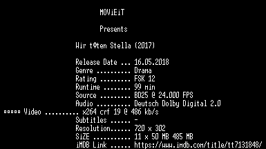 | FiLENAME: | Wir.toeten.Stella.German.2017.BDRiP.x264-MOViEiT.mkv |