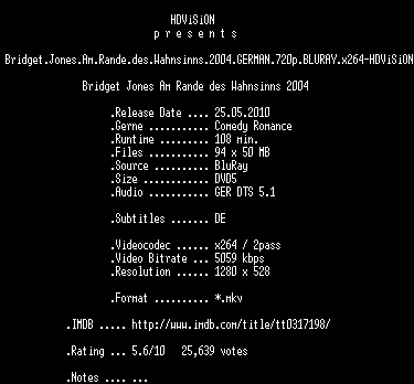 | FiLENAME: | Bridget Jones - Am Rande des Wahnsinns (2004) [GER-dts 720p BD].mkv |