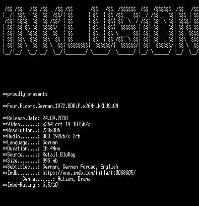 | FiLENAME: | Four.Riders.German.1972.BDRiP.x264-iNKLUSiON.mkv |