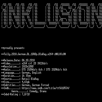 | FiLENAME: | Tully.2018.German.DL.1080p.BluRay.x264-iNKLUSiON.mkv |