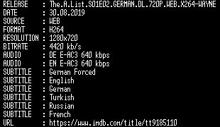 | FiLENAME: | The.A.List.S01E02.GERMAN.DL.720P.WEB.X264-WAYNE.mkv |