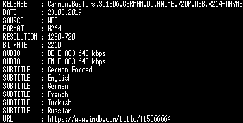| FiLENAME: | Cannon.Busters.S01E06.GERMAN.DL.ANIME.720P.WEB.X264-WAYNE.mkv |