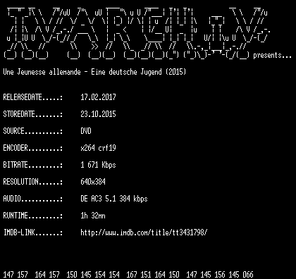 | FiLENAME: | Une.Jeunesse.allemande.Eine.deutsche.Jugend.2015.German.DVDRip.x264-TVARCHiV.mkv |
