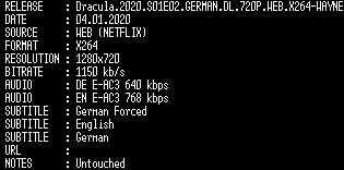 | FiLENAME: | Dracula.2020.S01E02.GERMAN.DL.720P.WEB.X264-WAYNE.mkv |