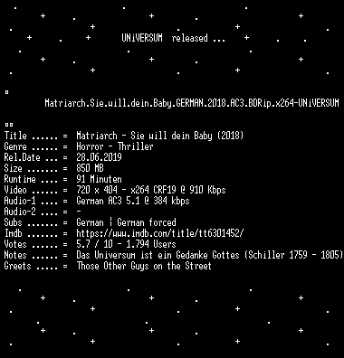| FiLENAME: | Matriarch.Sie.will.dein.Baby.GERMAN.2018.AC3.BDRip.x264-UNiVERSUM.mkv |