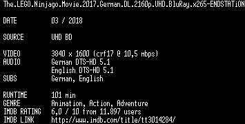 | FiLENAME: | The.LEGO.Ninjago.Movie.2017.German.DL.2160p.UHD.BluRay.x265-ENDSTATiON.mkv |