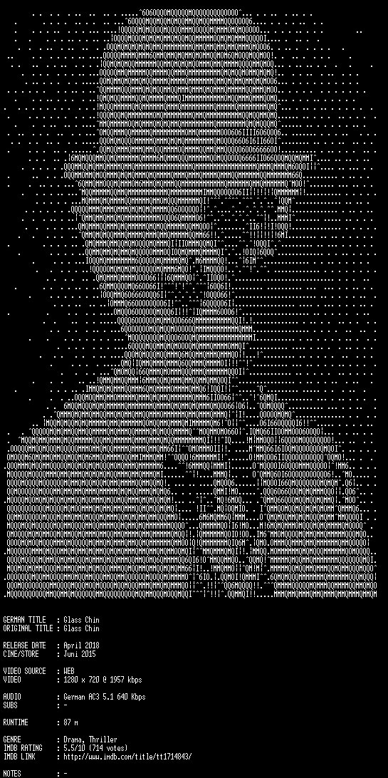 | FiLENAME: | Glass.Chin.2014.German.720p.WebHD.x264-CLASSiCO.mkv |