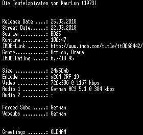 | FiLENAME: | Die.Teufelspiraten.von.Kau.Lun.German.REMASTERED.1973.AC3.BDRip.x264-SPiCY.mkv |