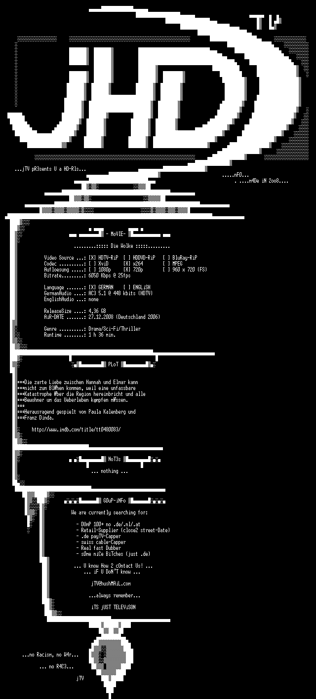 | FiLENAME: | Die Wolke (2006) [GER 720p HDTV].mkv |