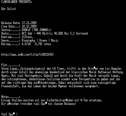| FiLENAME: | Der.Solist.DVDRiP.AC3.Dubbed.German.XViD-CiNEGRiNDER.CD2.avi |