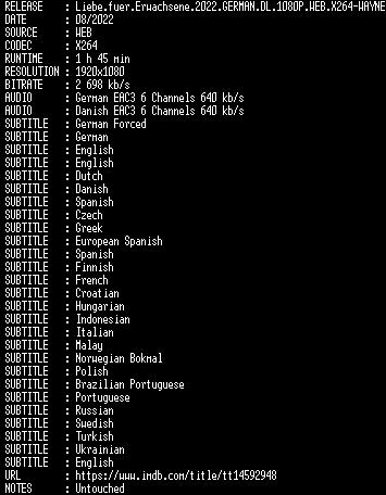 | FiLENAME: | Liebe.fuer.Erwachsene.2022.GERMAN.DL.1080P.WEB.X264-WAYNE.mkv |
