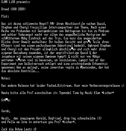 | FiLENAME: | Dread.German.2009.PROPER.DVDRip.XviD-GiNALiSA.avi |