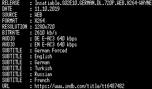 | FiLENAME: | Insatiable.S02E10.GERMAN.DL.720P.WEB.X264-WAYNE.mkv |
