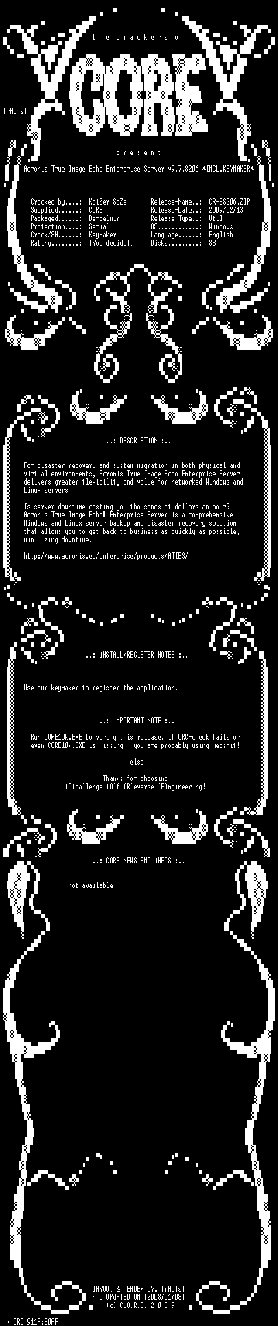 | FiLENAME: | Acronis.True.Image.Echo.Enterprise.Server.v9.7.8206.Incl.Keymaker-CORE.rar |