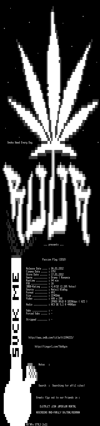 | FiLENAME: | Passion.Play.2010.German.AC3.BDRiP.XViD-ROOR.avi |