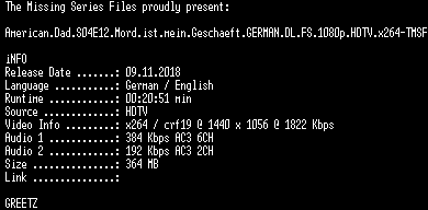 | FiLENAME: | American.Dad.S04E12.Mord.ist.mein.Geschaeft.GERMAN.DL.FS.1080p.HDTV.x264-TMSF.mkv |