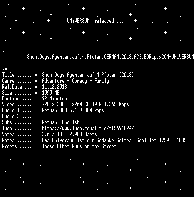 | FiLENAME: | Show.Dogs.Agenten.auf.4.Pfoten.GERMAN.2018.AC3.BDRip.x264-UNiVERSUM.mkv |