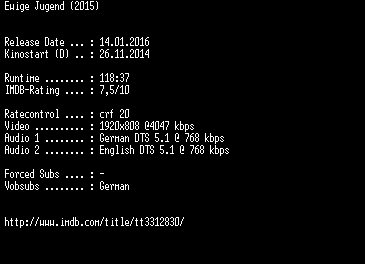 | FiLENAME: | Ewige.Jugend.2015.German.DTS.DL.1080p.BluRay.x264-EXQUiSiTE.mkv |