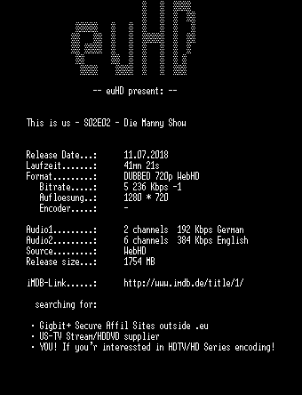 | FiLENAME: | This.is.us.S02E02.Die.Manny.Show.GERMAN.DUBBED.DL.720p.WebHD.h264-euHD.mkv |