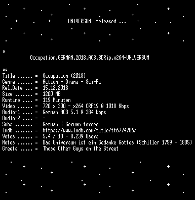 | FiLENAME: | Occupation.GERMAN.2018.AC3.BDRip.x264-UNiVERSUM.mkv |