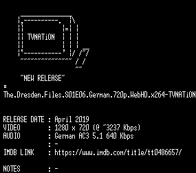 | FiLENAME: | The.Dresden.Files.S01E06.German.720p.WebHD.x264-TVNATiON.mkv |