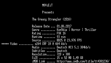 | FiLENAME: | The.Greasy.Strangler.German.2016.AC3.BDRip.x264-MOViEiT.mkv |
