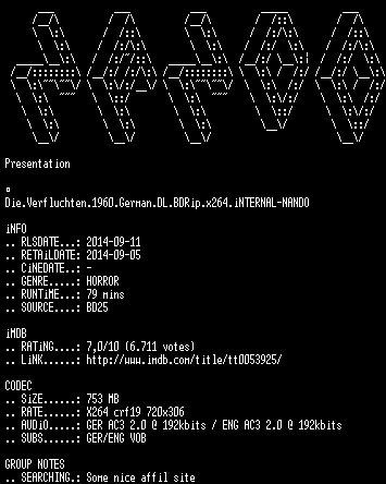 | FiLENAME: | Die.Verfluchten.1960.German.DL.BDRip.x264.iNTERNAL-NANDO.mkv |