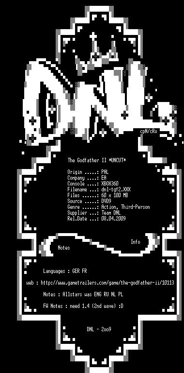 | FiLENAME: | The.Godfather.II.PAL.READ.NFO.XBOX360-DNL.iso |