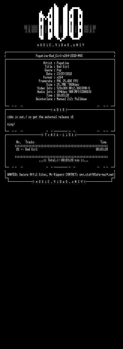 | FiLENAME: | Fugative-Bad_Girl-x264-2010-MVO.mkv |