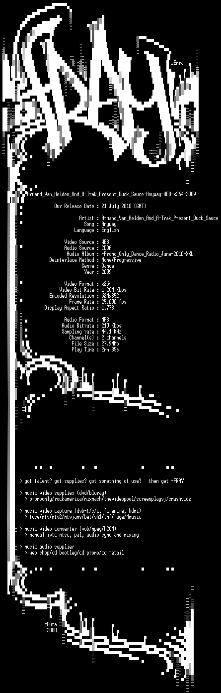 | FiLENAME: | Armand_Van_Helden_And_A-Trak_Present_Duck_Sauce-Anyway-WEB-x264-2009-FRAY.mkv |