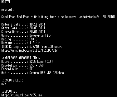 | FiLENAME: | Good.Food.Bad.Food.Anleitung.fuer.eine.bessere.Landwirtschaft.German.DVDRip.XviD-MORTAL.avi |
