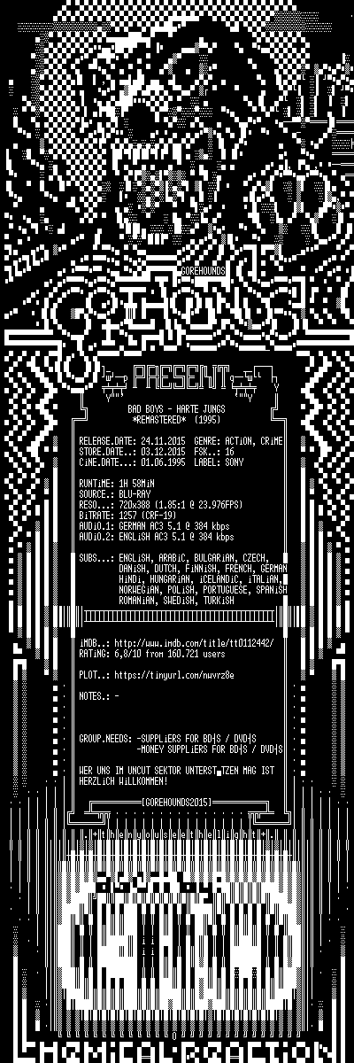 | FiLENAME: | Bad.Boys.Harte.Jungs.REMASTERED.GERMAN.1995.DL.BDRiP.x264-GOREHOUNDS.mkv |
