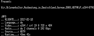 | FiLENAME: | Wir.Sklavenhalter.Ausbeutung.in.Deutschland.German.DOKU.HDTVRiP.x264-BTVG.mkv |