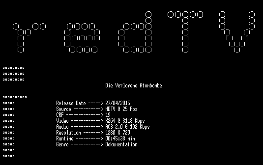 | FiLENAME: | Die.verlorene.Atombombe.GERMAN.DOKU.720p.HDTV.x264-redTV.mkv |