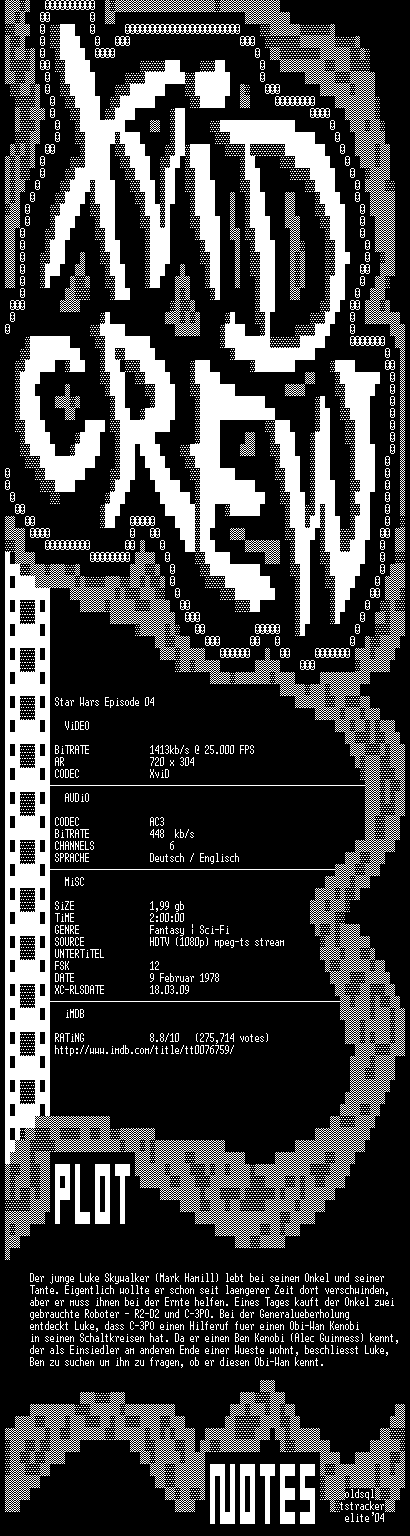 | FiLENAME: | 014.Star.Wars.EP04.Neue.Hoffnung.GERMAN.DL.1977.HDTVRiP.AC3.XviD-XC.avi |