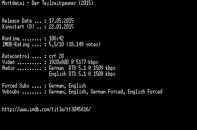 | FiLENAME: | Mortdecai.Der.Teilzeitgauner.2015.German.DL.1080p.BluRay.x264-EXQUiSiTE.mkv |
