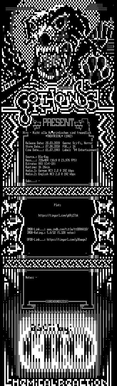 | FiLENAME: | Xtro.Nicht.Alle.Ausserirdischen.Sind.Freundlich.1982.THEATRICAL.GERMAN.DL.BDRiP.x264-GOREHOUNDS.mkv |