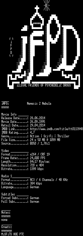 | FiLENAME: | Nemesis.2.Nebula.German.1995.AC3.BDRiP.x264-iFPD.mkv |